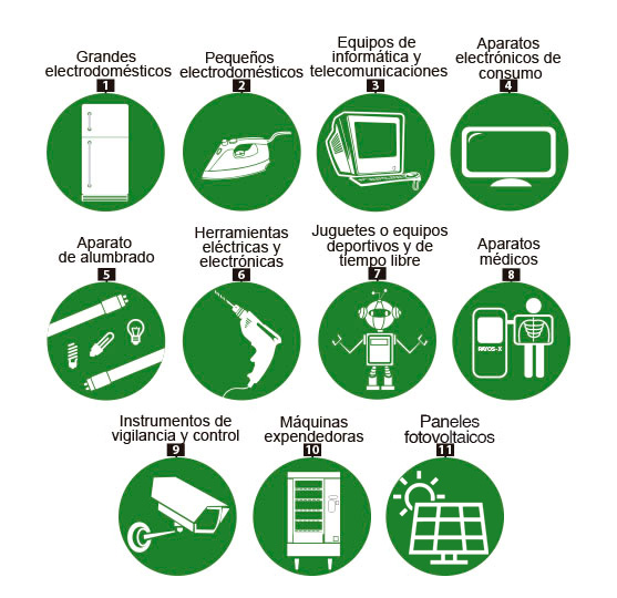 A nivel internacional se ha adoptado una metodología de clasificación de aparatos eléctricos y electrónicos (AEE) que contempla 11 categorías. Cuando estos aparatos terminan su vida útil o se tornan obsoletos, se convierten en residuos (RAEE) que se identifican en función de la misma categoría empleada para los aparatos nuevos o que aún se encuentran operativos.